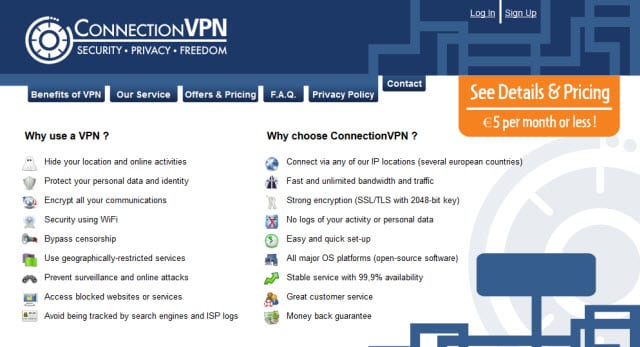 两者都与 Windows、Mac、Linux、iOS 和 Android 兼容。使用专用 IP 地址和无限数据传输。以及 iPhone、iPad 或 Android 等移动设备。有效保护您真实的IP和地理位置等身份信息。他们的高级帐户还允许多个同时连接。高级计划还支持最多 5 个连接、一个固定 IP 和端口转发。数据传输基于SSL256位加密,不记录网络传输,保护隐私。